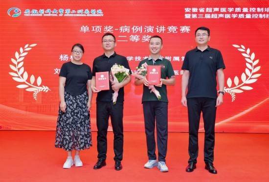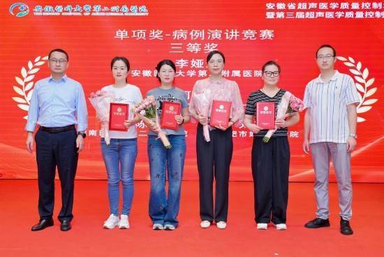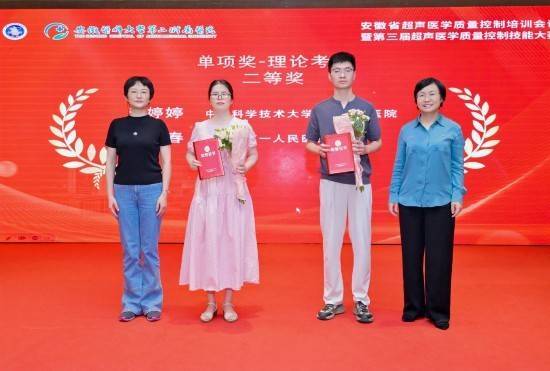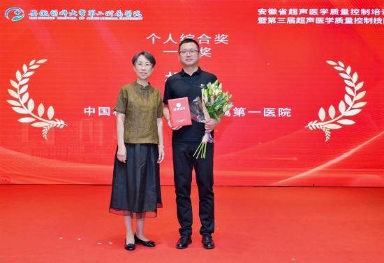 中国科学技术大学附属第一医院代表队由西区杨杨、南区李婷婷和超声心动室何小燕组成。经过激烈角逐,杨杨一举夺得个人综合一等奖、理论考试一等奖及病例演讲二等奖;李婷婷与何小燕分获理论考试二等奖和病例演讲三等奖。医院代表队以总分第一的成绩荣获团体一等奖,科室主任何年安代表团队上台领奖。